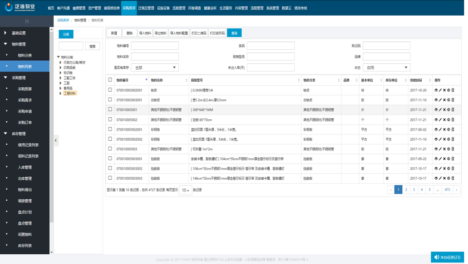 物业管理涉及的物料种类庞杂,并且物料采购及库存管理工作精细化程度较高,入库、出库及日常库存盘点耗时费力。泛海智慧服务积累多年物料管理经验,将物料分门别类并固化至平台中。同时制定物料申领流程,集中申请、统一采购,实现条线化管理、提升集采效率。通过系统实现采购与库存联动,满足物料从采买、入库、出库的全程跟踪。针对日常库存盘点,平台将依据物料的流通记录生成详细的库存清单,以此简化库管员的盘点工作。