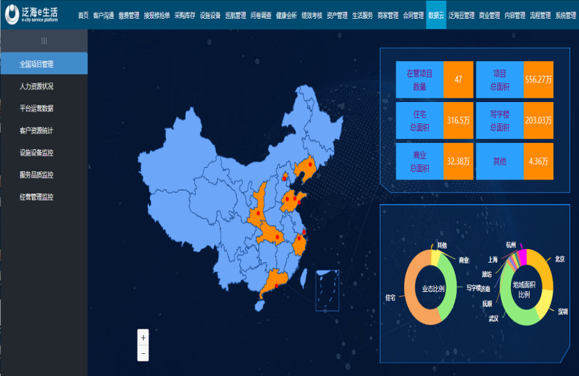 在财务监督方面,泛海综合管理平台提供一系列强大的管控流程,执行过程中所有流程的操作人均可在平台中进行回溯。同时,计费、收费流程绝大部分已实现系统自动计算,避免人工参与引发的错误纠纷。包含:自动计算客户收费明细并自动生成应收账单;优惠额度的集中控制,所有优惠记录有迹可循;根据配置规则自动计算欠款质押金,鼓励客户尽快缴费;同时支持银行划款计划的自动管理,对押金及预交除专项资管退款外也能灵活冲应收;针对票据也能相应作废及重用。一系列物业缴费管控流程已覆盖全部应用场景,并可灵活应对各类缴费特例。由于收款流程实现线上化,因此财务对账工作也极大的简化。同时,收缴率等多项指标可灵活设定周期进行统计,满足管理者对工作进度的概览。