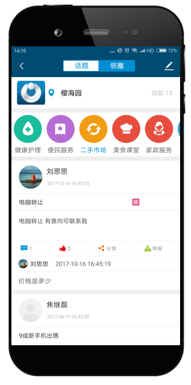 在传统物业管理中,由于繁杂的信息传递机制,管理决策者往往难以接收到客户真实的反馈。智慧物业服务通过流程化问卷调查及投诉表扬这两种物业惯用调研工具,合理缩短客户信息反馈节点,使客户的反馈能够无障碍传达至处理人员,保障处理问题时效性。避免传统物业服务中,客户反馈得不到有效沟通、解决而引发的反感情绪。为促进社区良好人文氛围,泛海综合平台搭建话题及邻圈等线上沟通渠道,由工作人员组织讨论、交流,促进社区融洽、和谐的同时拉进与客户间的距离。